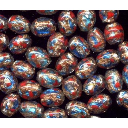 10 beautiful Vintage foil footballs loaded with color and sparkle. Each bead measures 9mm x 10mm.
