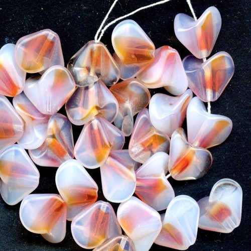 These lovely vintage flower beads can be used in many ways including interlocking. Each measures 14 x 16 mm at its widest point. Each lot contains 11 beads.
