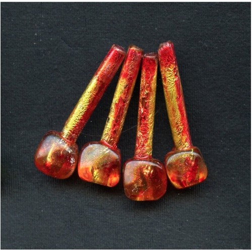 These beads are filled with gold and red foil....Perfect for drops on a necklace or instant earrings. Each is 35mm long and the ball at the end measures 10mm. There are 4 beads per lot.