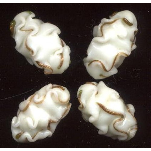 4 beautiful Vintage lampwork ruffled focals with trails of sparkling aventurine. Beads measure 17mm x 28mm.