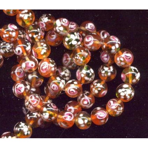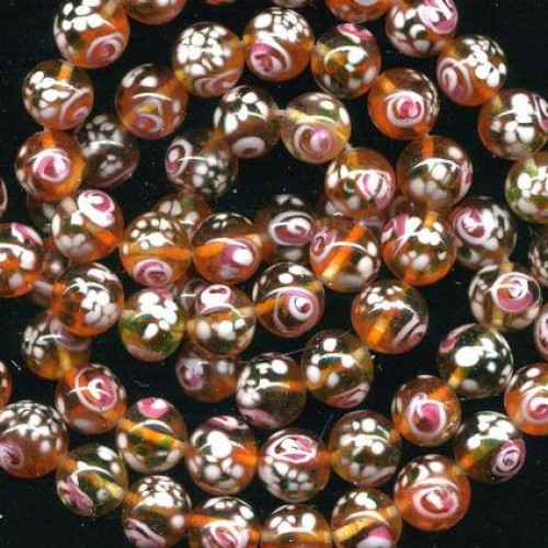 12 beautiful vintage millies with pink roses and white on a translucent bead. They measure 12mm.