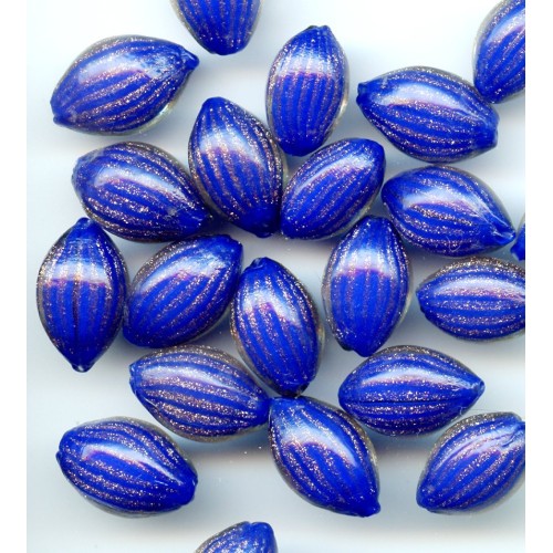 These lovely Vintage Venetian Cobalt Lampwork beadsare filled with sparkling Aventurine. Each measures 12mm x 8mm and are available in lots of 7 beads each.