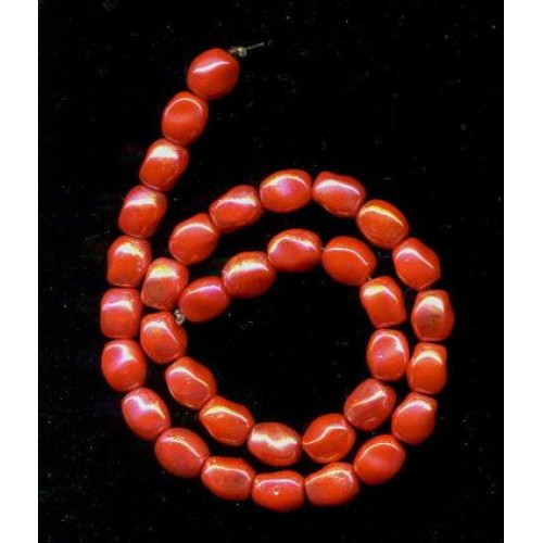 VINTAGE WEST GERMAN CORAL GLASS LUSTER BEADS