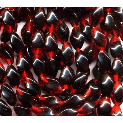 12 beautiful vintage West German twisted givre in jet black and cherry red. Each wonderful bead measures 16mm x 9mm. That is not red thread running through the bead.