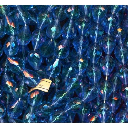 15 Gorgeous sparkling sapphire vintage West German teardrops with a shot of green inside each lovely faceted bead. Beads measure 12mm x 10mm at widest part. Beautifully faceted with long facets and multi facets around wider part of bead.